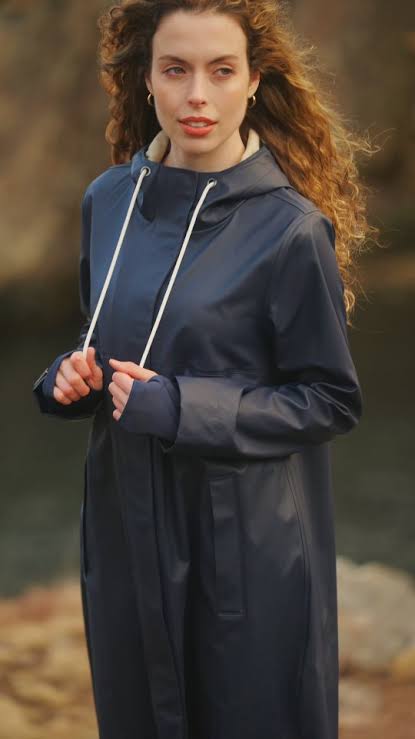 Full length, lightweight, 100% waterproof raincoat, with an A-line silhouette offering more room for outfit layering. A traditional unlined design, it includes modern features like water-resistant wrist warmers and a magnetic front closure. Designed with meticulous attention to detail and quality, the mernini raincoat withstands the unrelenting power of the North Atlantic wind and rain. Every strong woman needs a strong raincoat.
